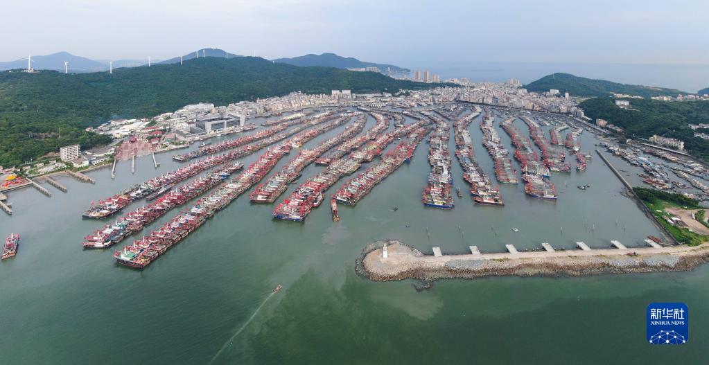 8月24日,在廣東陽(yáng)江市海陵島閘坡國家級中心漁港,停滿(mǎn)了歸港避風(fēng)的漁船(無(wú)人機照片)。
