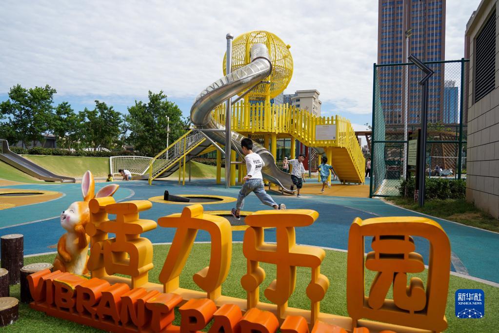 8月24日,孩子們在威海世紀體育公園內玩耍。
