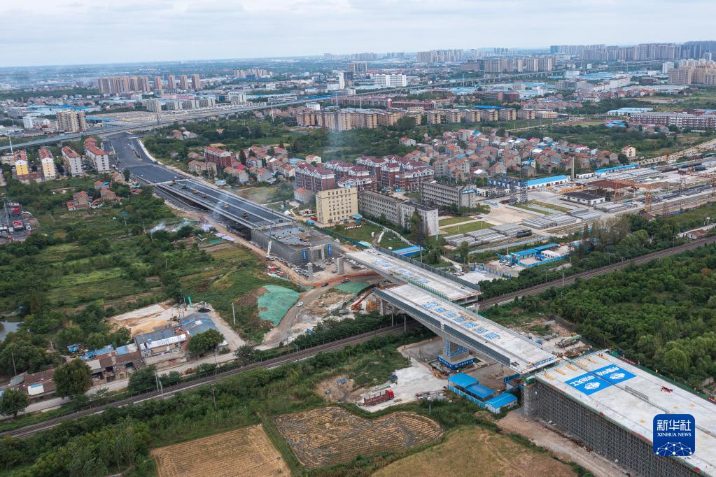 8月30日,湖北孝感跨京廣鐵路的橋梁成功轉體(無(wú)人機照片)。