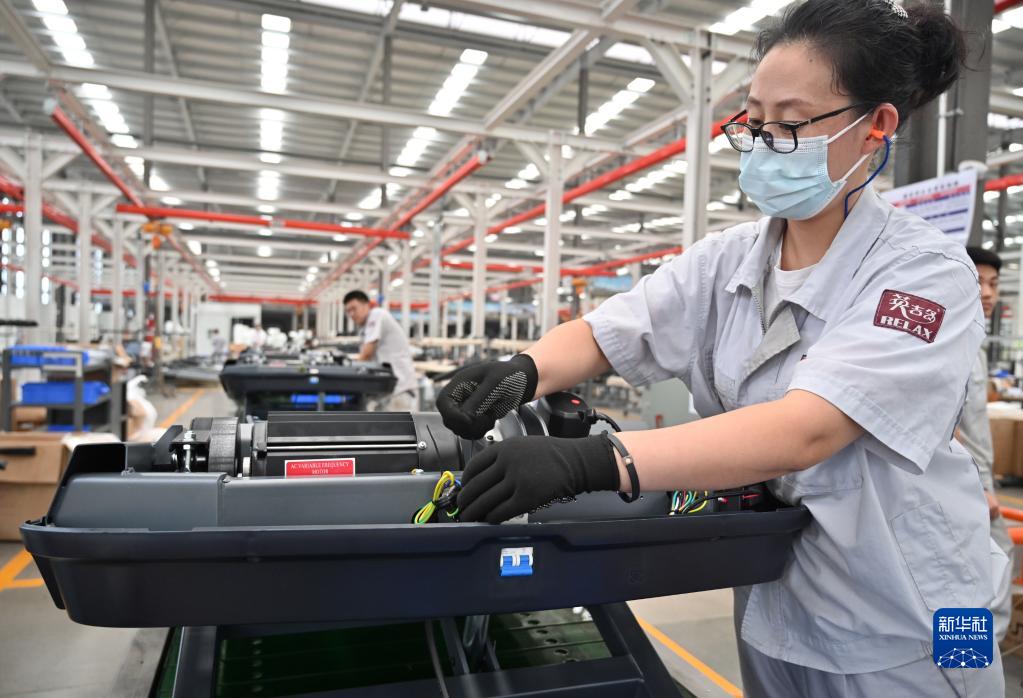 8月30日,在日照經(jīng)濟技術(shù)開(kāi)發(fā)區一家企業(yè)組裝車(chē)間,工人組裝出口歐美國家的智能跑步機。