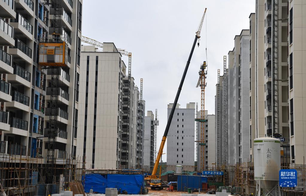 9月2日拍攝的??诮瓥|新區東寨新居一期項目施工現場(chǎng)。
