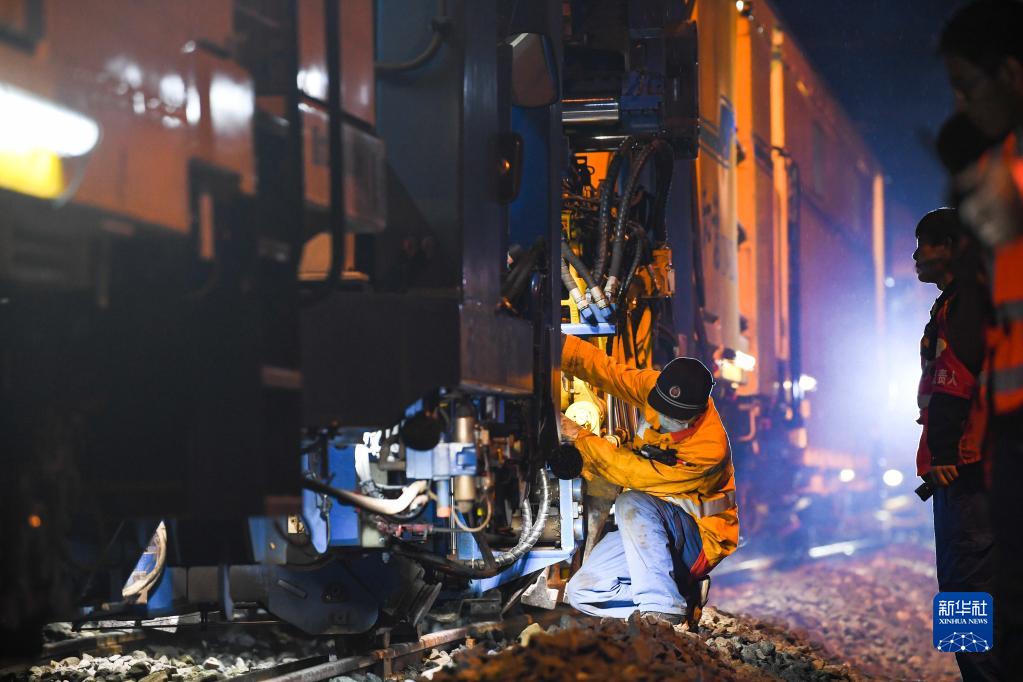 9月3日凌晨,工人在渝利鐵路沙子站增設客運設施項目作業(yè)。