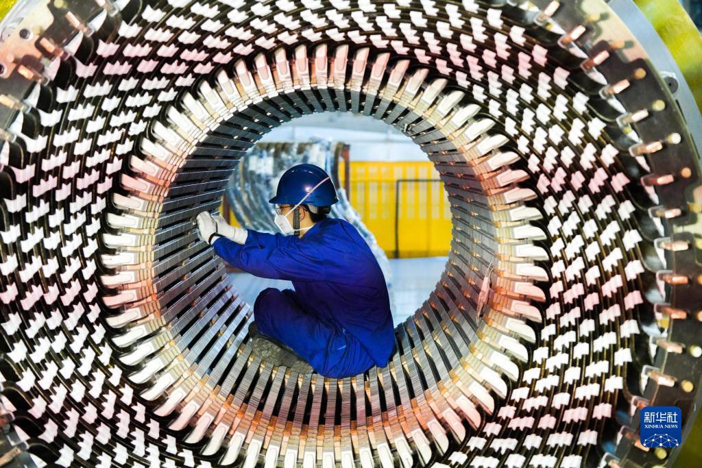 9月3日,在哈電集團哈爾濱電機廠(chǎng)有限責任公司的生產(chǎn)車(chē)間,工人在進(jìn)行生產(chǎn)作業(yè)。