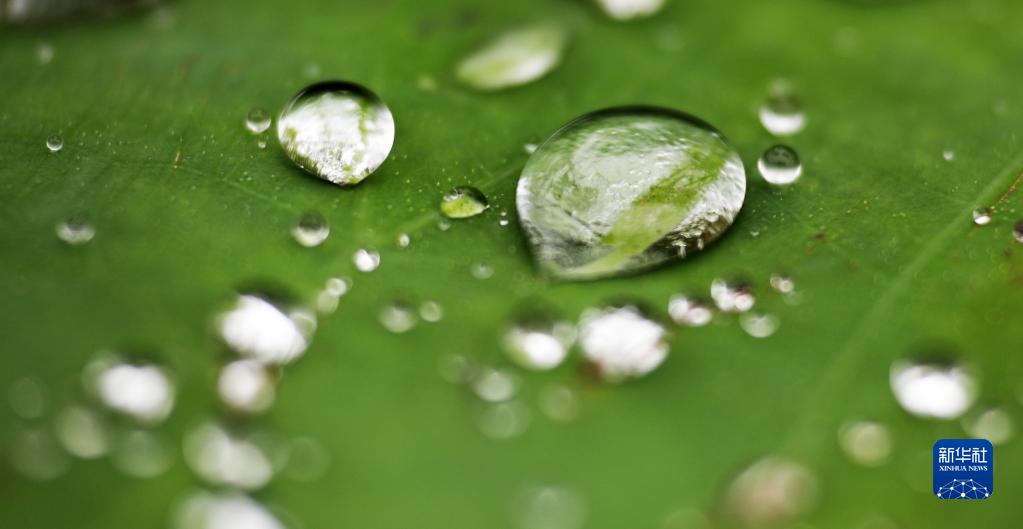 8月29日在山東省臨沂市郯城縣故城墨泉公園拍攝的荷葉上的水珠。