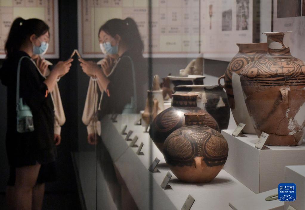 9月4日,參觀(guān)者在“繁星盈天——中國百年百大考古發(fā)現展”上拍攝展品。