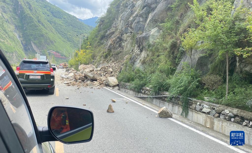 這是9月5日四川省森林消防總隊甘孜支隊在前往瀘定縣的路上發(fā)現的塌方情況。