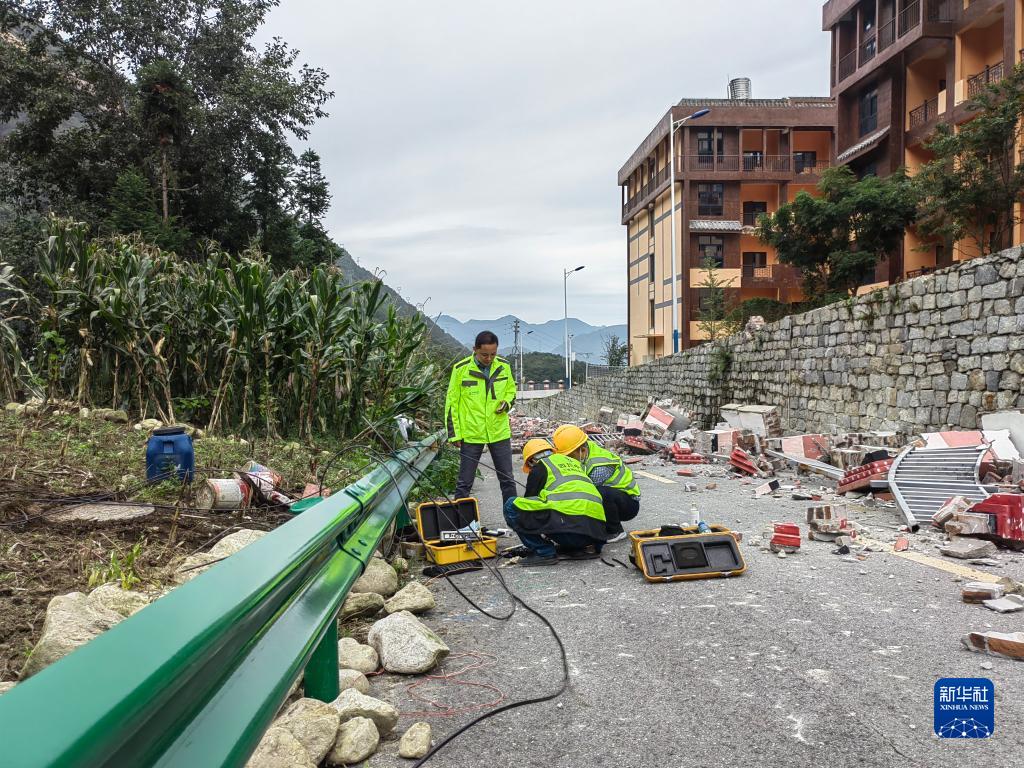 9月5日,中國移動(dòng)四川公司網(wǎng)絡(luò )保障團隊在搶修瀘定縣磨西鎮受損光纜。