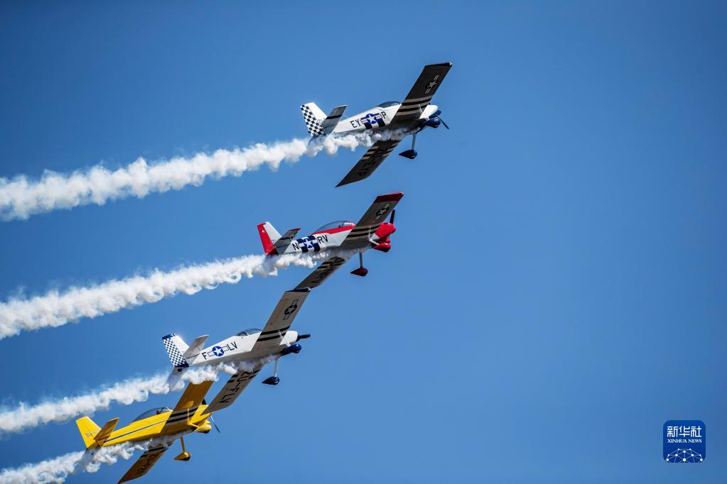 這是9月4日在南非約翰內斯堡拍攝的蘭德航展上的飛行表演。