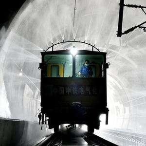 9月5日,在濟萊高鐵章丘段,隧道清洗車(chē)在清洗隧道壁。
