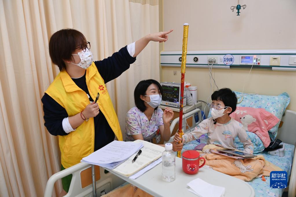 “病房學(xué)?!笔潜本┬玛?yáng)光慈善基金會(huì )開(kāi)展的公益項目,通過(guò)在醫院內或附近設立教室,組織教師和志愿者給長(cháng)期住院的大病兒童上課,教他們做手工、繪畫(huà)?!安》繉W(xué)?!表椖坑?012年啟動(dòng),截至目前在全國18個(gè)?。▍^、市)有38間病房學(xué)校教室,累計服務(wù)患兒超過(guò)11萬(wàn)人次。新華社記者 蔡湘鑫 攝