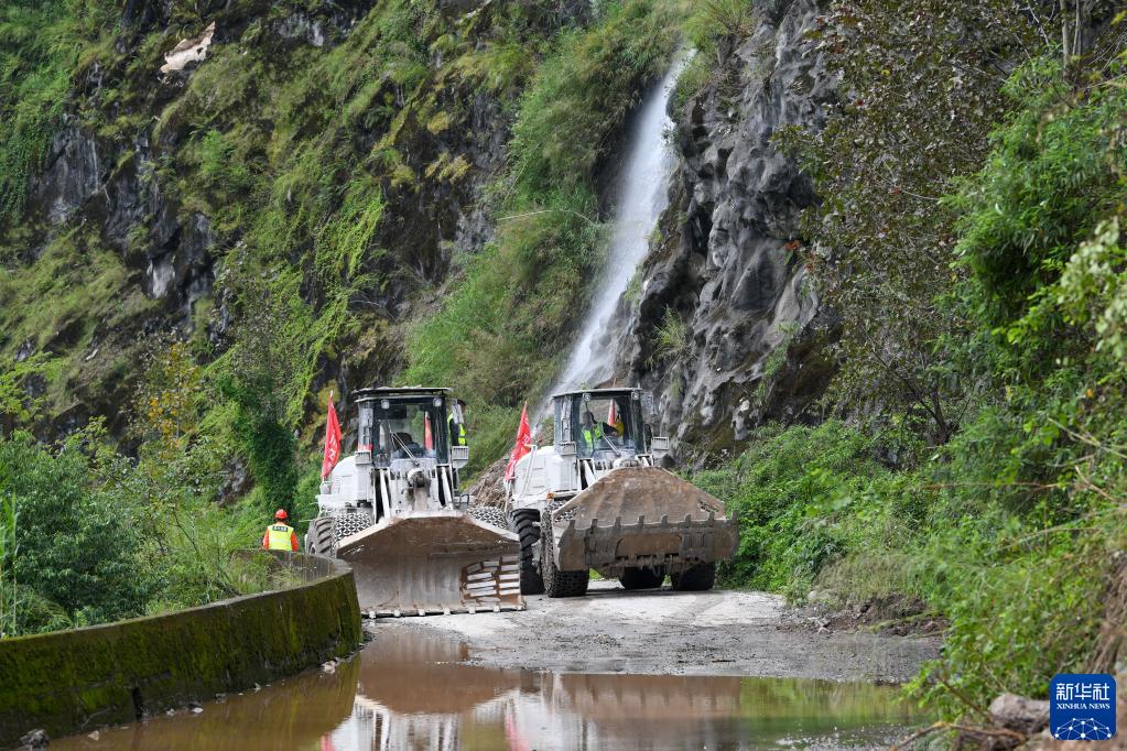 9月8日,四川路橋的工作人員搶修石棉縣與瀘定縣得妥鎮之間的道路。
