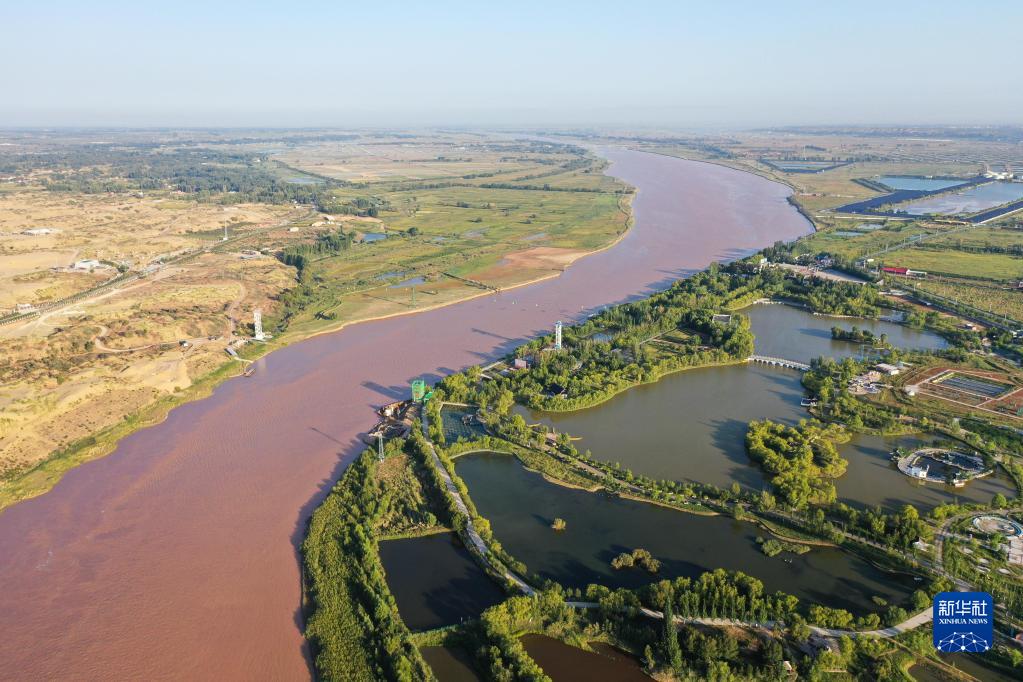 這是9月8日拍攝的黃河托克托縣段景色(無(wú)人機照片)。