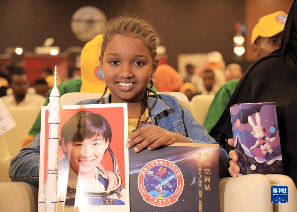 2022年9月6日,在索馬里首都摩加迪沙的“天宮對話(huà)”活動(dòng)索馬里分會(huì )場(chǎng),當地學(xué)生展示活動(dòng)紀念品。來(lái)自埃塞俄比亞、埃及等非洲8國的青少年當日通過(guò)網(wǎng)絡(luò )視頻與正在中國空間站執行任務(wù)的神舟十四號航天員進(jìn)行“天宮對話(huà)”活動(dòng)。當天活動(dòng)的主會(huì )場(chǎng)設在位于埃塞俄比亞首都亞的斯亞貝巴的非洲聯(lián)盟(非盟)委員會(huì )總部,并在阿爾及利亞、埃及、埃塞俄比亞、納米比亞、尼日利亞、塞內加爾、索馬里和南非共8個(gè)國家設立分會(huì )場(chǎng),來(lái)自中非各界近千人出席。