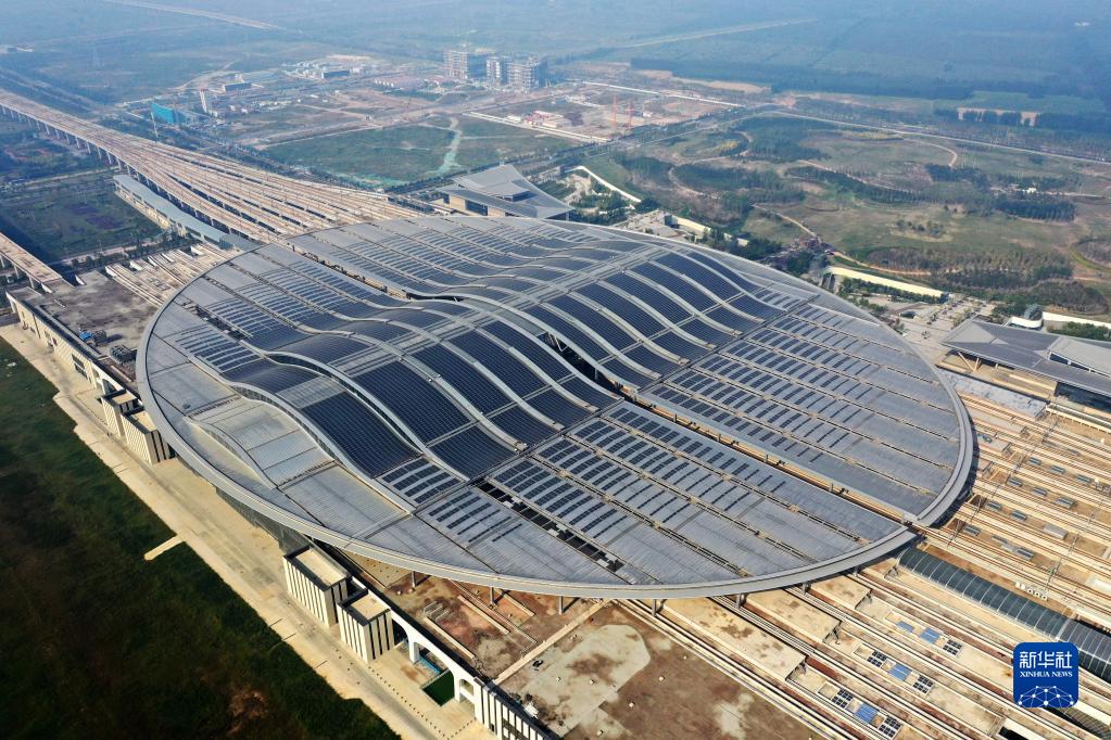 京雄城際鐵路雄安站(9月9日攝,無(wú)人機照片)。