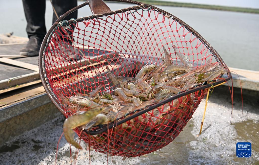 近日,位于天津濱海新區北塘街的約萬(wàn)畝蝦塘迎來(lái)豐收季,村民們在蝦塘圍網(wǎng)、捕獲、裝車(chē),將收貨的鮮蝦供應市場(chǎng)。