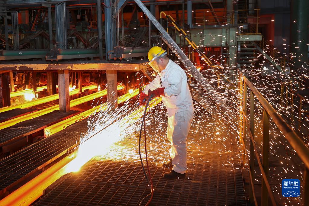 9月10日,工人在江蘇連云港市贛榆區一家鋼鐵企業(yè)生產(chǎn)車(chē)間作業(yè)。