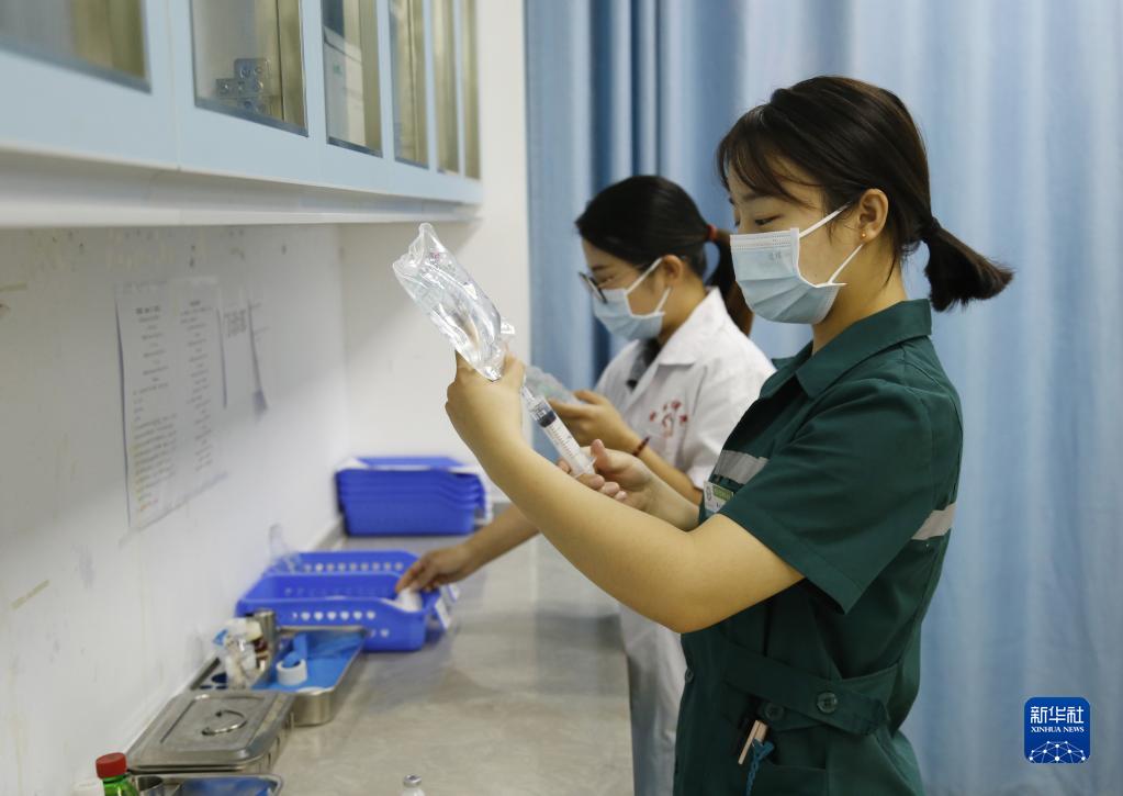 9月10日,河北邢臺市襄都區醫院醫護人員在為患者配藥。