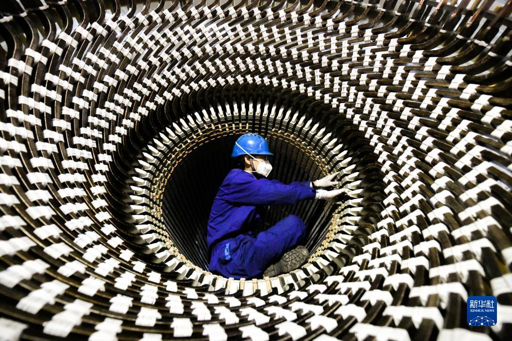 9月3日,在哈電集團哈爾濱電機廠(chǎng)有限責任公司的生產(chǎn)車(chē)間,工人在進(jìn)行生產(chǎn)作業(yè)。