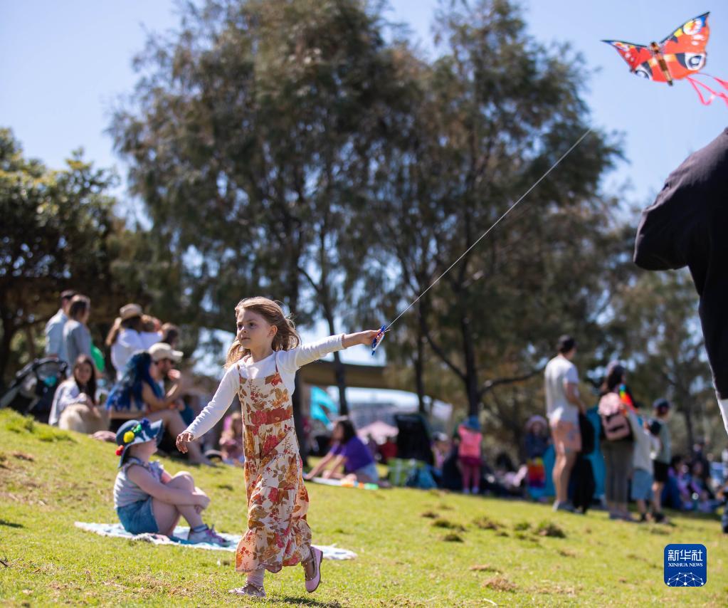 9月11日,一個(gè)小女孩在澳大利亞悉尼風(fēng)箏節上放風(fēng)箏。