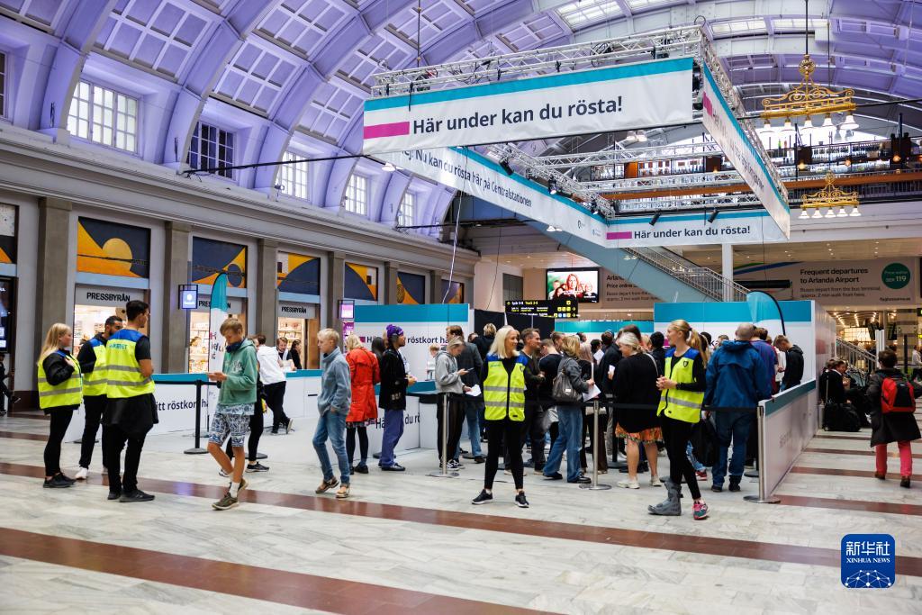 這是9月11日拍攝的位于瑞典斯德哥爾摩中心火車(chē)站內的投票站。