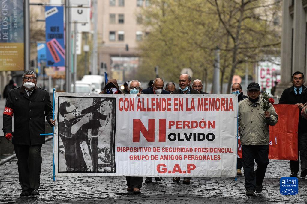 9月11日,智利民眾在首都圣地亞哥集會(huì ),紀念前總統阿連德遇難49周年。