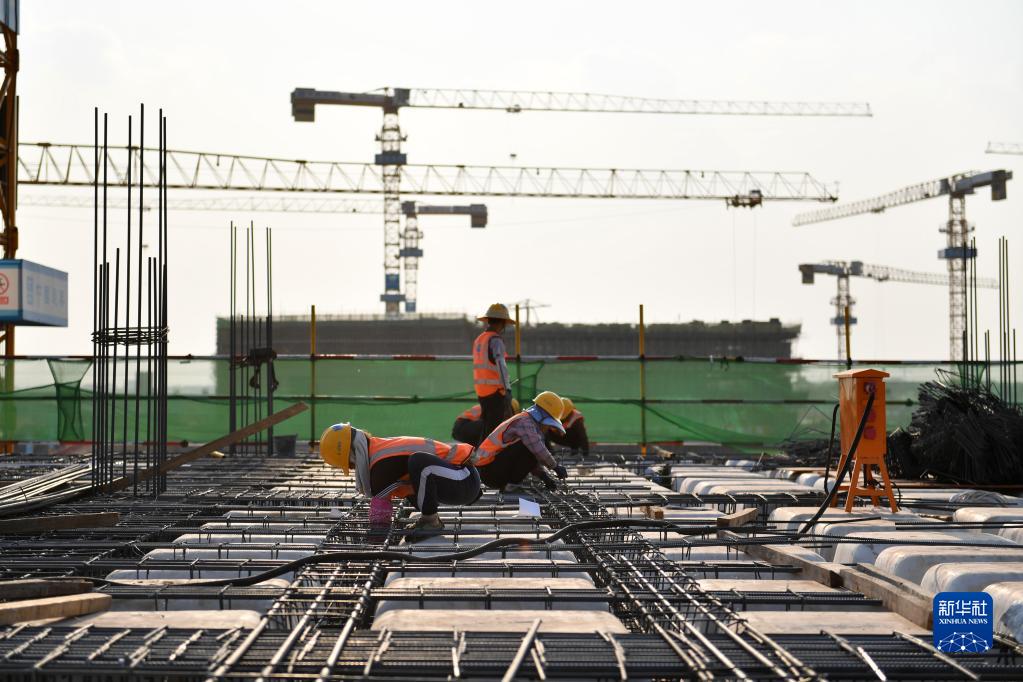 9月12日,中建五局的施工人員在長(cháng)沙機場(chǎng)改擴建工程綜合交通樞紐工程項目現場(chǎng)作業(yè)。