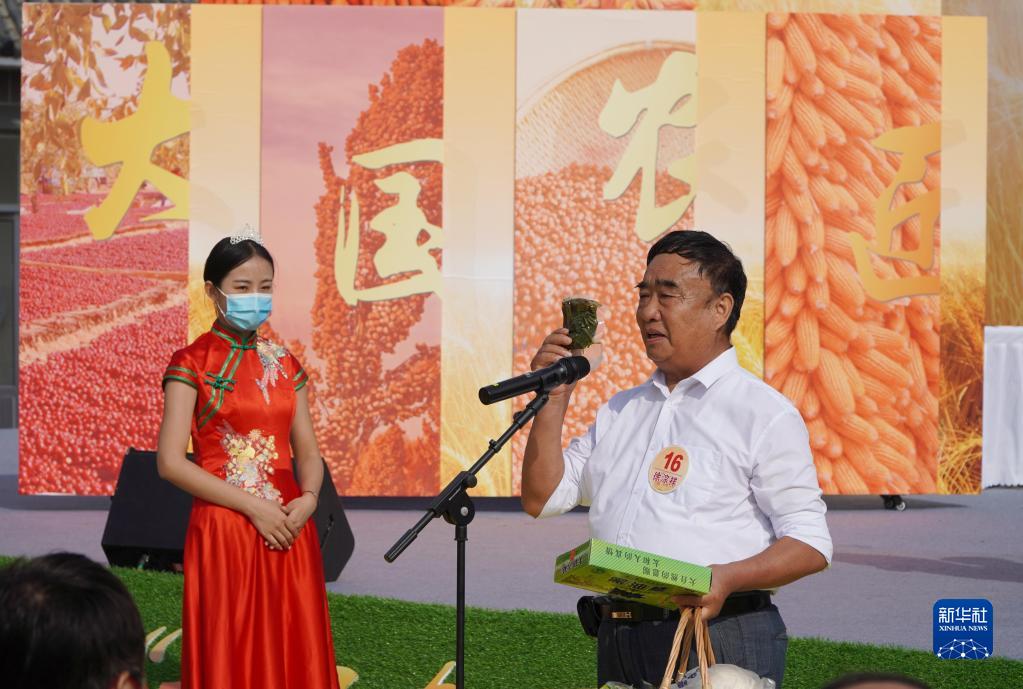 9月14日,在山東省樂(lè )陵市舉行的全國農民技能大賽(種植能手)現場(chǎng),來(lái)自安徽省的參賽選手徐淙祥在介紹自己家鄉的農產(chǎn)品。