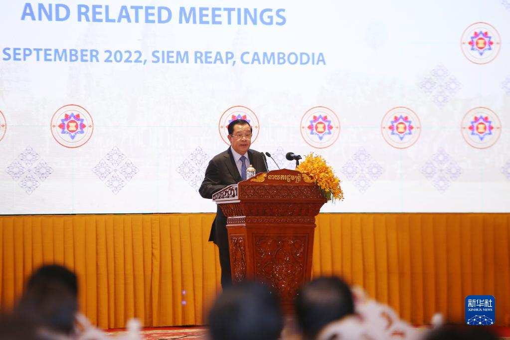 9月14日,柬埔寨首相洪森在暹粒舉行的第54屆東盟經(jīng)濟部長(cháng)會(huì )議及相關(guān)會(huì )議開(kāi)幕式上致辭。