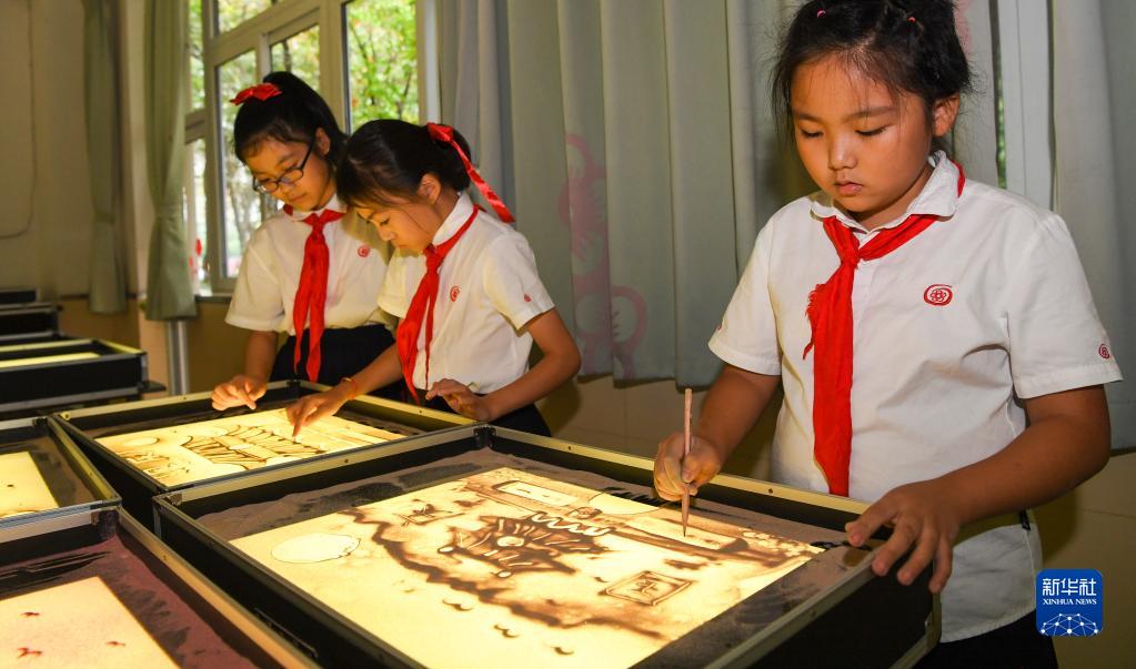 9月14日,重慶謝家灣學(xué)校學(xué)生在練習沙畫(huà)。