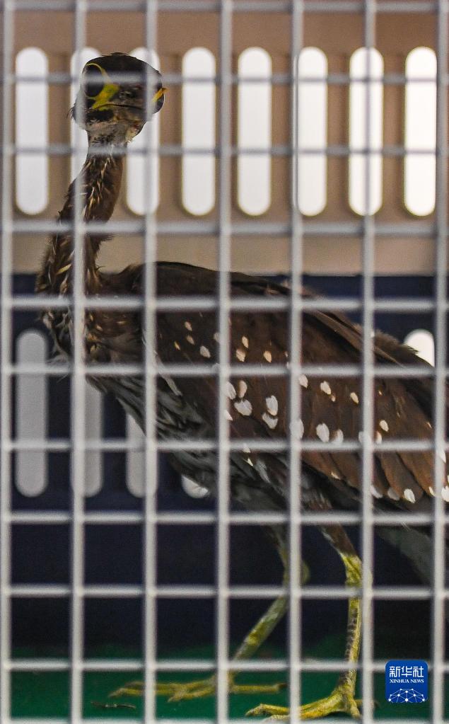9月16日,傷愈的海南鳽在清遠長(cháng)隆國家級世界珍稀野生動(dòng)植物種源基地野生動(dòng)物救護中心等待接受放歸前的體檢。