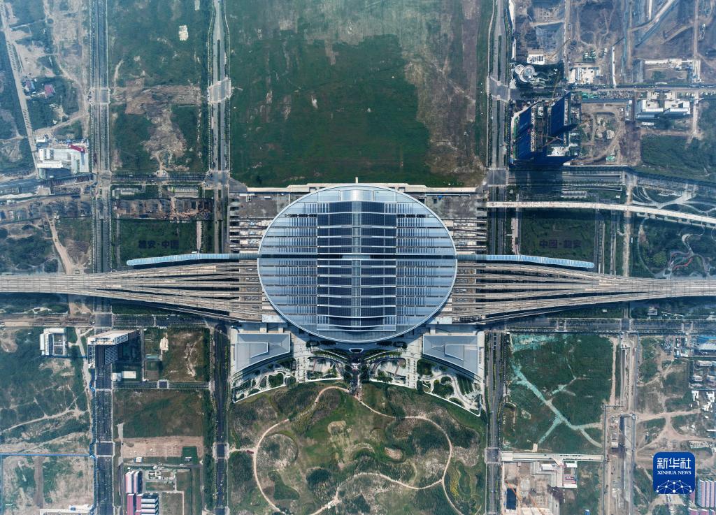 這是京雄城際鐵路雄安站(9月9日攝,無(wú)人機照片)。京雄城際鐵路雄安站站頂分布式光伏電站總裝機容量6000千瓦,站頂鋪設1.77萬(wàn)塊、4.2萬(wàn)平方米多晶硅光伏組件,電站采用自發(fā)自用、余電上網(wǎng)模式,自2020年12月正式并網(wǎng)發(fā)電以來(lái),已累計發(fā)電超過(guò)1000萬(wàn)千瓦時(shí)。