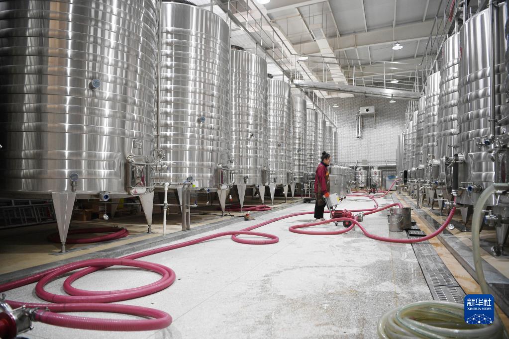 9月16日,工人在寧夏銀川市賀蘭山東麓的沃爾豐酒莊釀酒車(chē)間調試設備準備釀造葡萄酒。