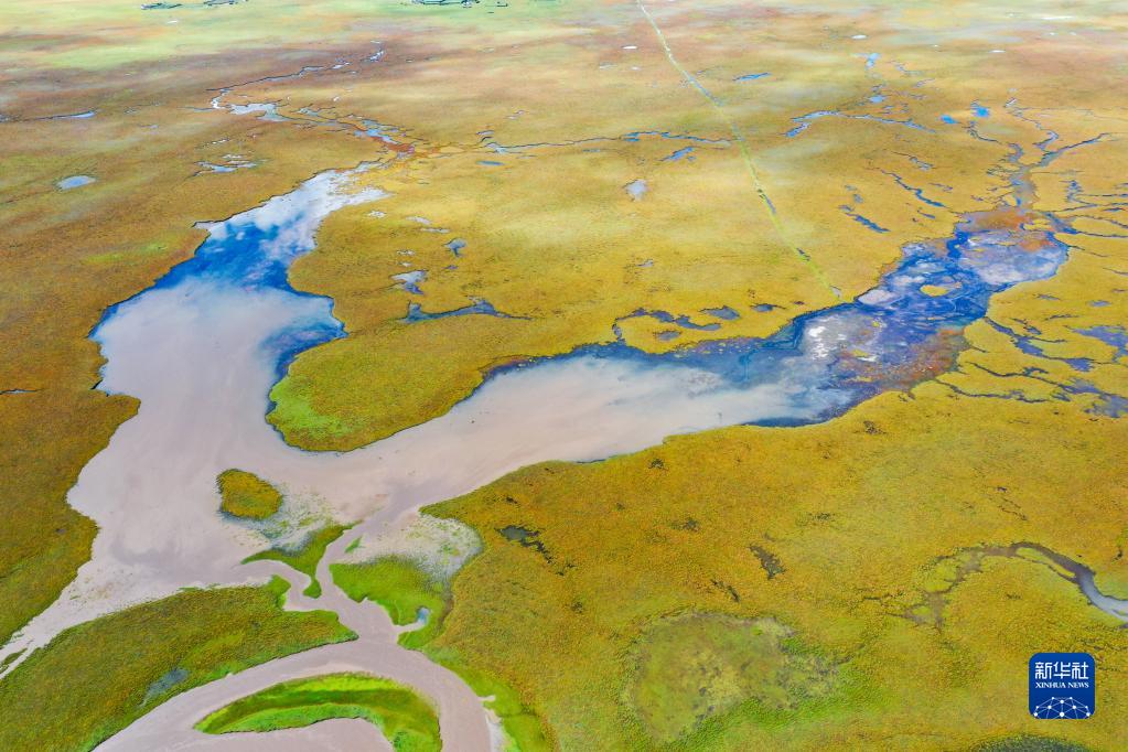 這是瑪曲縣阿萬(wàn)倉濕地內的一處沼澤(9月17日攝,無(wú)人機照片)。