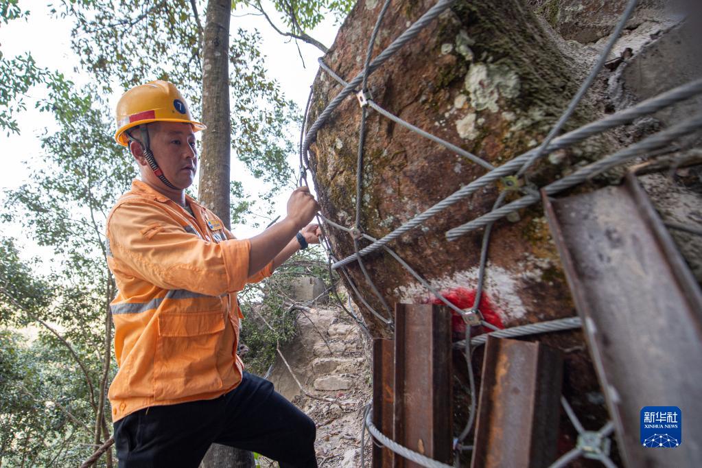 9月19日,看守員趙偉燈在赤嶺隧道山頂巡查山體情況。