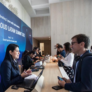 9月21日,在巴西里約熱內盧舉行的華為云拉美三周年峰會(huì )上,參會(huì )代表觀(guān)看華為云技術(shù)介紹。新華社記者 王天聰 攝