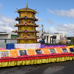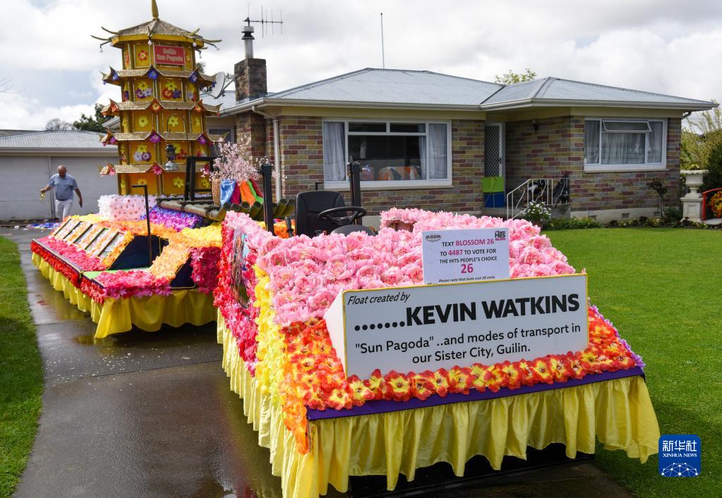 9月24日,在新西蘭黑斯廷斯,凱文·沃特金斯為自己的中國主題花車(chē)做巡游前的最后準備。