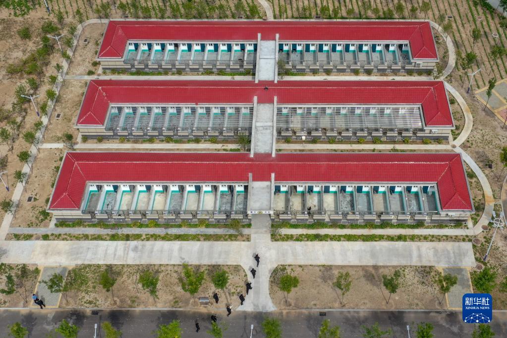 山東省聊城市公安局警犬訓練基地標準化工作犬犬舍(9月24日攝,無(wú)人機照片)。
