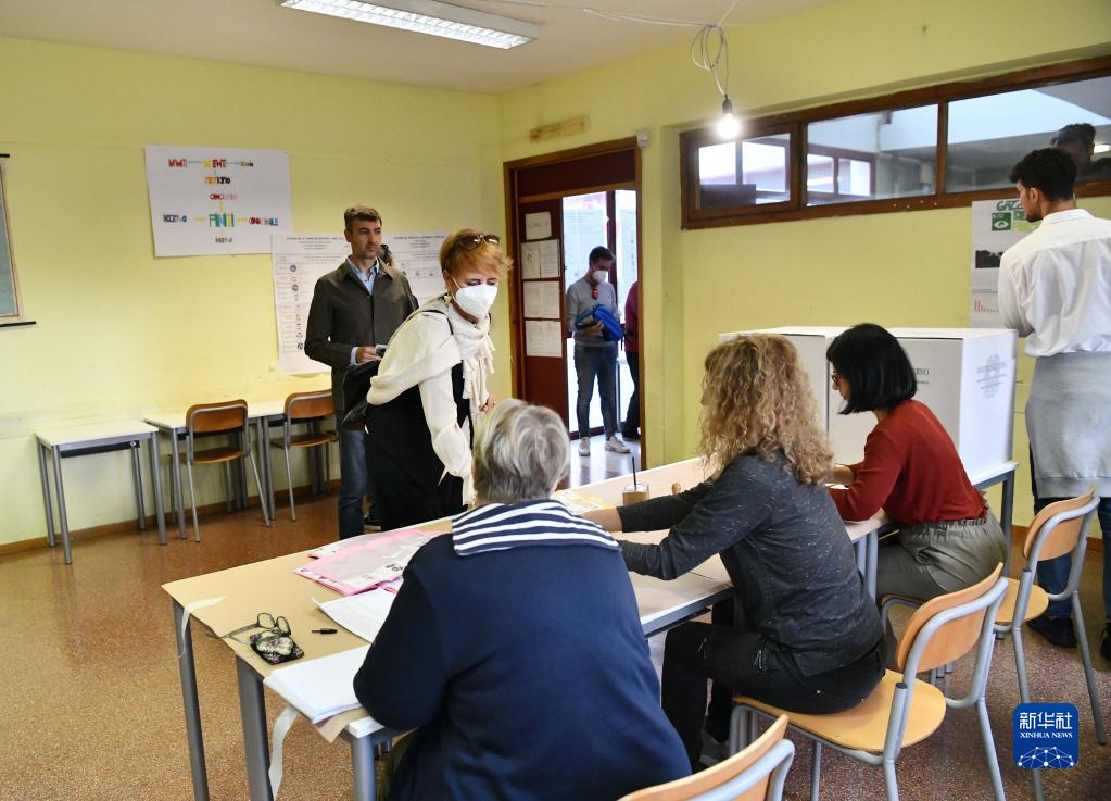 9月25日,選民在意大利羅馬的一處投票站準備投票。