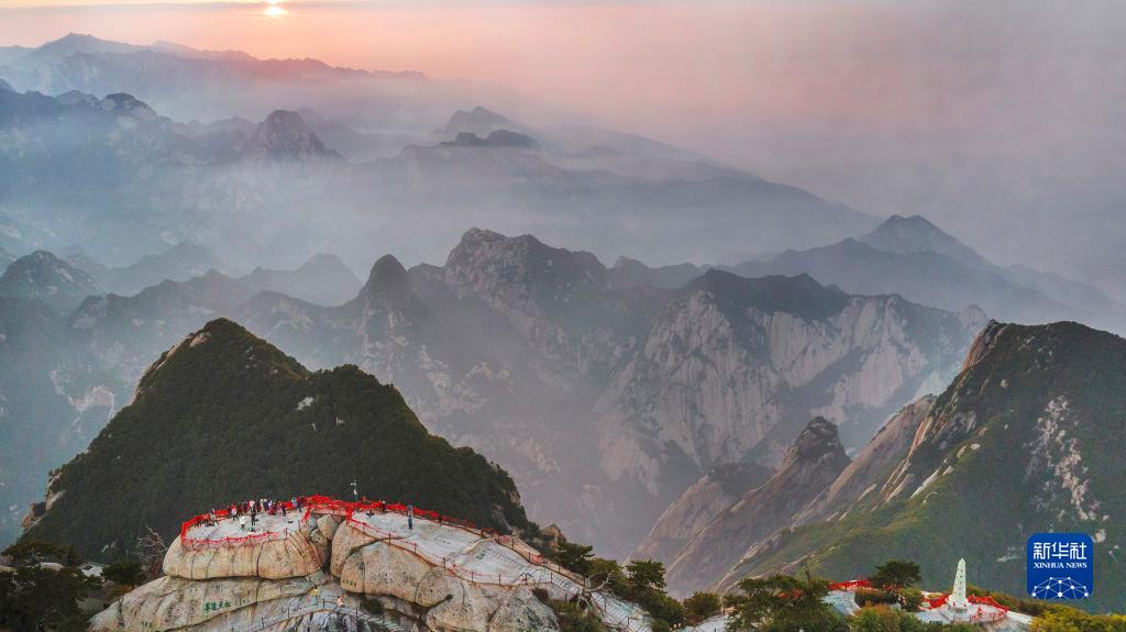 9月25日,游人在西岳華山西峰頂上游覽(無(wú)人機照片)