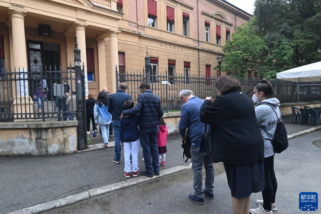 9月25日,選民在意大利博洛尼亞一處投票站等待投票。