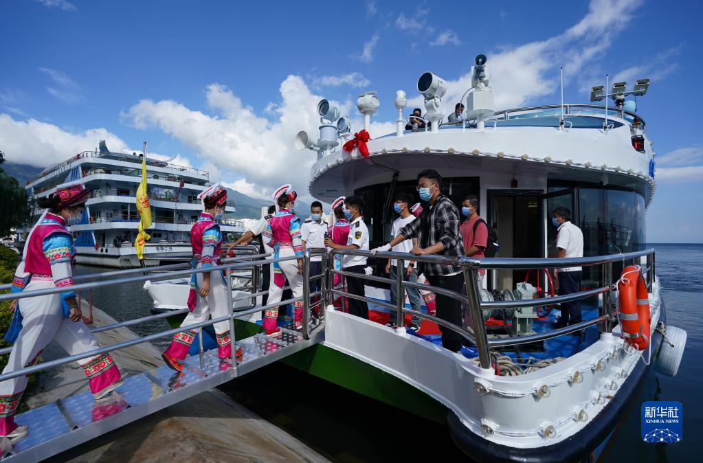 當日,由大理旅游集團投資建造的新能源游船“風(fēng)花雪月號”在云南省大理白族自治州洱海首航。相比傳統燃油動(dòng)力船舶,新能源“風(fēng)花雪月號”游船將大大降低污染物排放,助力洱海生態(tài)保護。