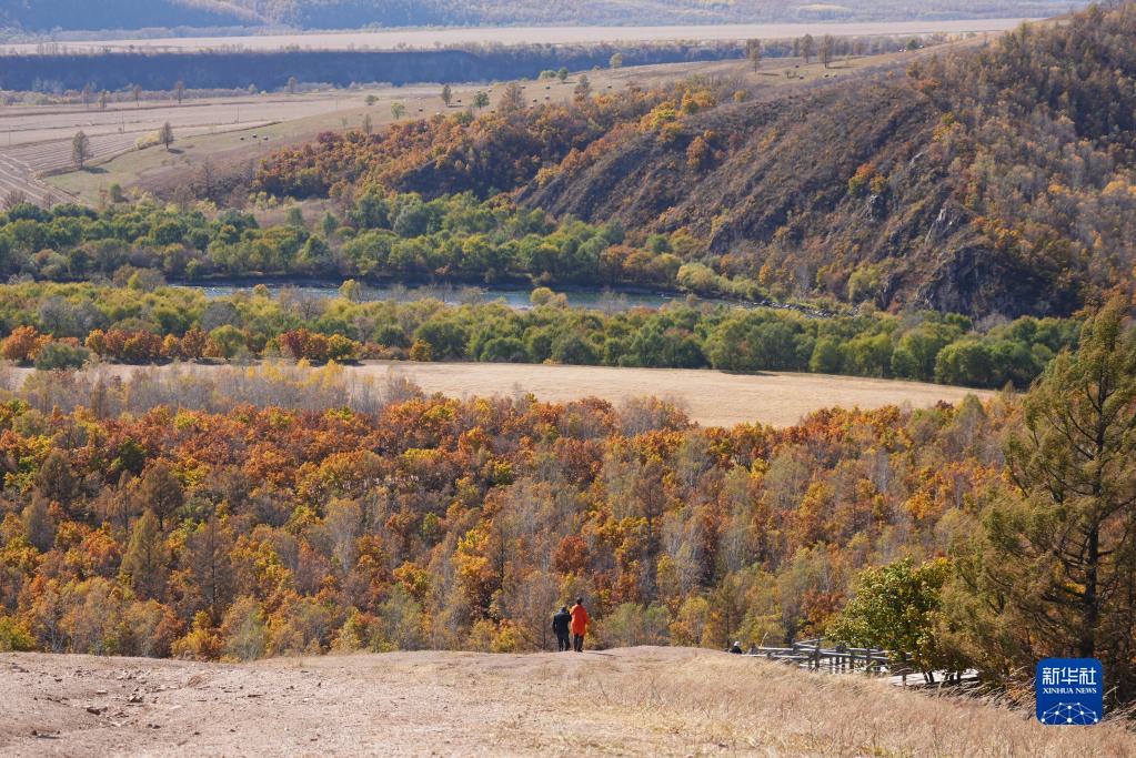 游客在扎蘭屯市柴河鎮十大灣欣賞秋日風(fēng)光(9月27日攝)。