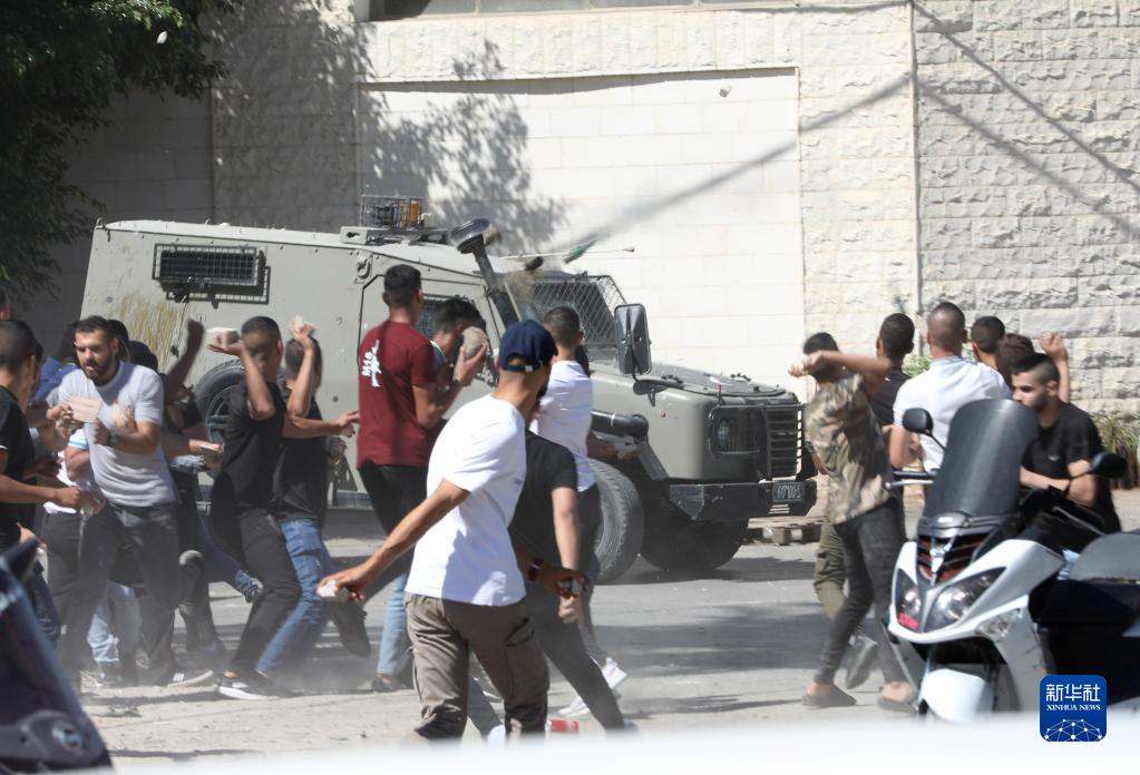9月28日,在約旦河西岸北部城市杰寧,巴勒斯坦抗議者與以色列軍隊發(fā)生沖突。
