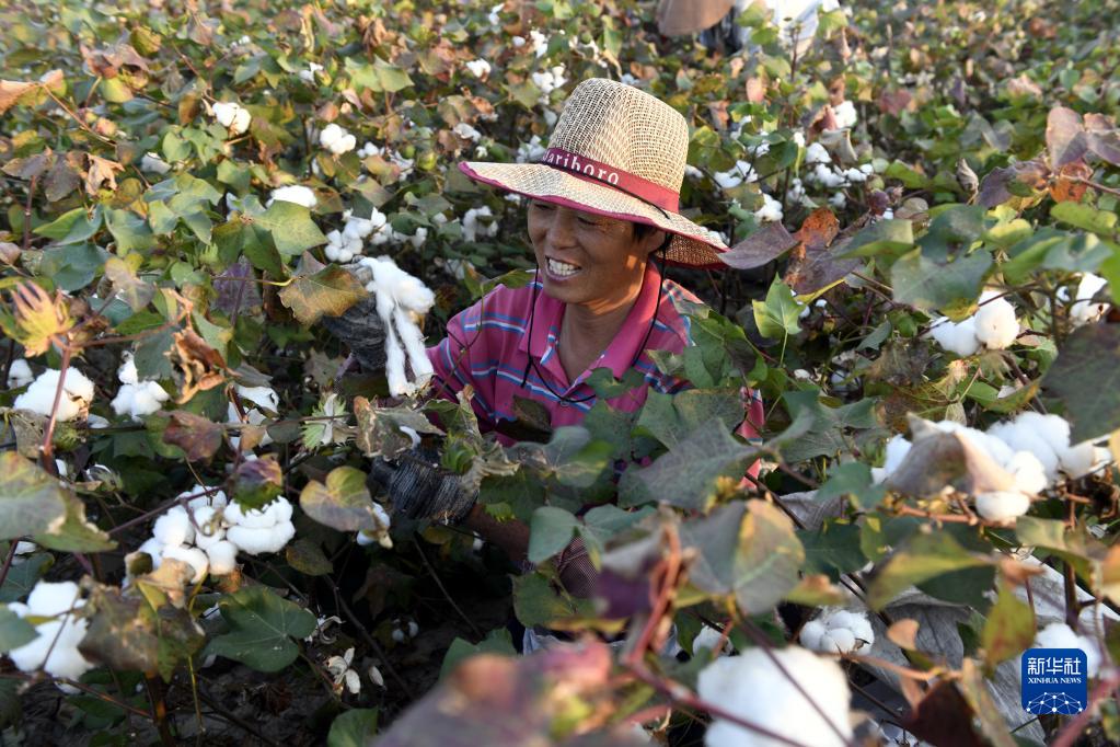 9月28日,山東省濱州市無(wú)棣縣西小王鎮棉農在采收新棉。