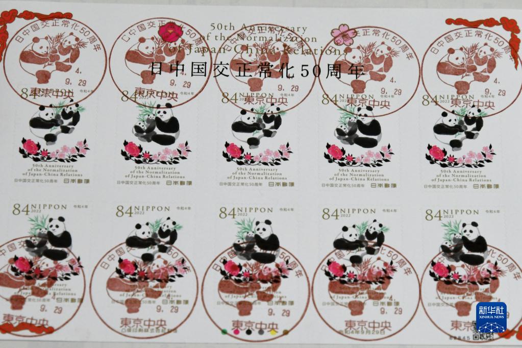 這是9月29日在日本東京拍攝的“日中邦交正?;?0周年”紀念郵票。