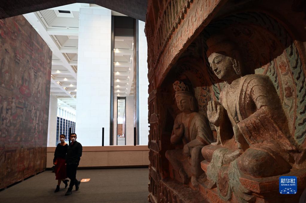 9月29日,觀(guān)眾參觀(guān)等比例高保真數字化3D打印復制的云岡石窟第6窟南壁“文殊問(wèn)疾”屋形龕。