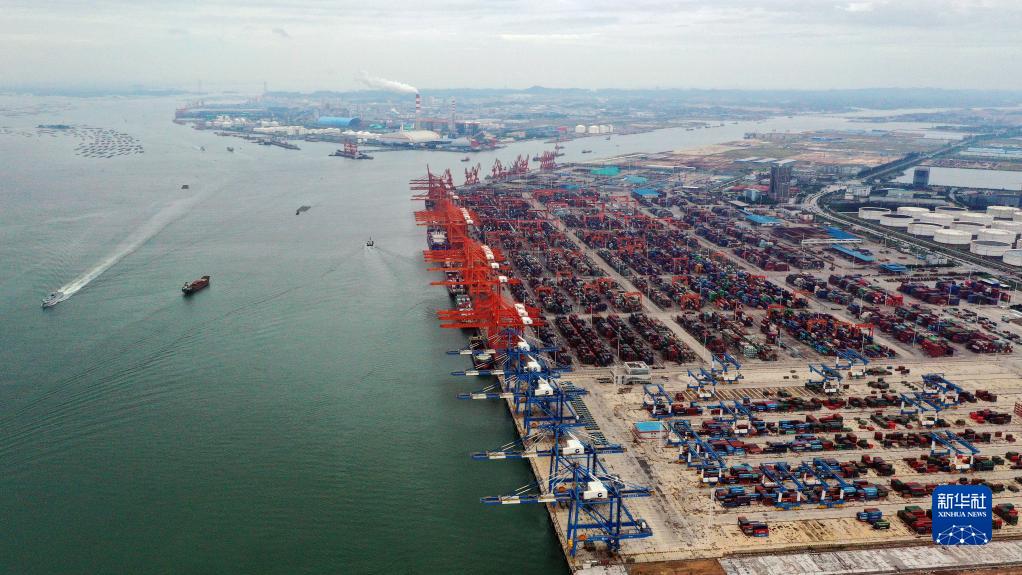 9月29日拍攝的廣西欽州港碼頭(無(wú)人機照片)。