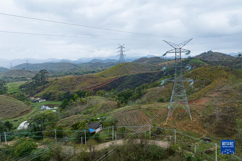 這是9月30日在巴西里約熱內盧拍攝的美麗山特高壓輸電二期項目輸電線(xiàn)路(無(wú)人機照片)。新華社記者 王天聰 攝