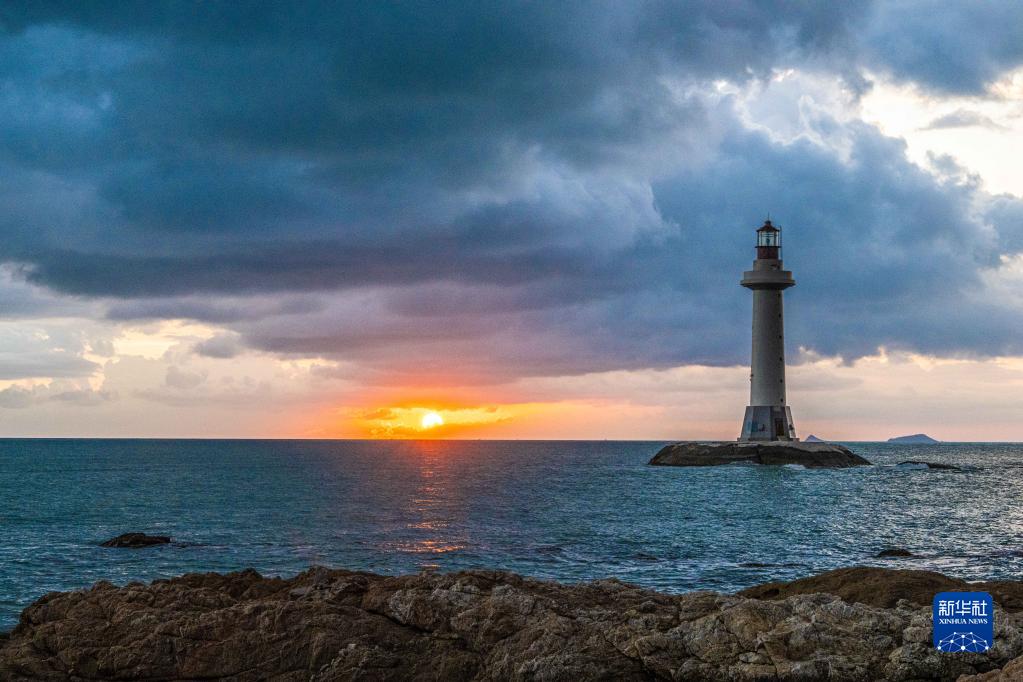 這是10月3日在海南三亞大小洞天旅游區拍攝的落日景色。