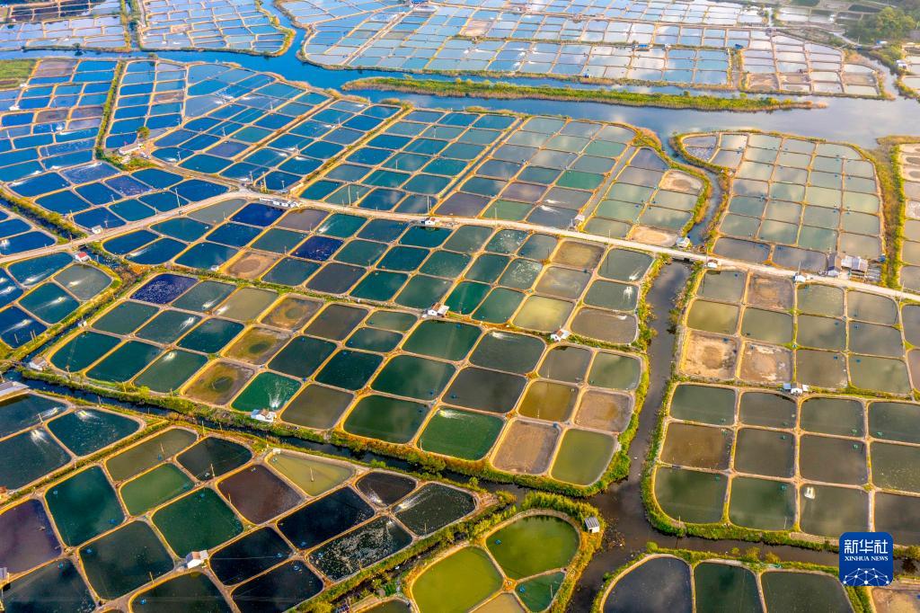 這是10月4日在浙江省寧波市鄞州區咸祥鎮拍攝的養殖塘(無(wú)人機照片)。